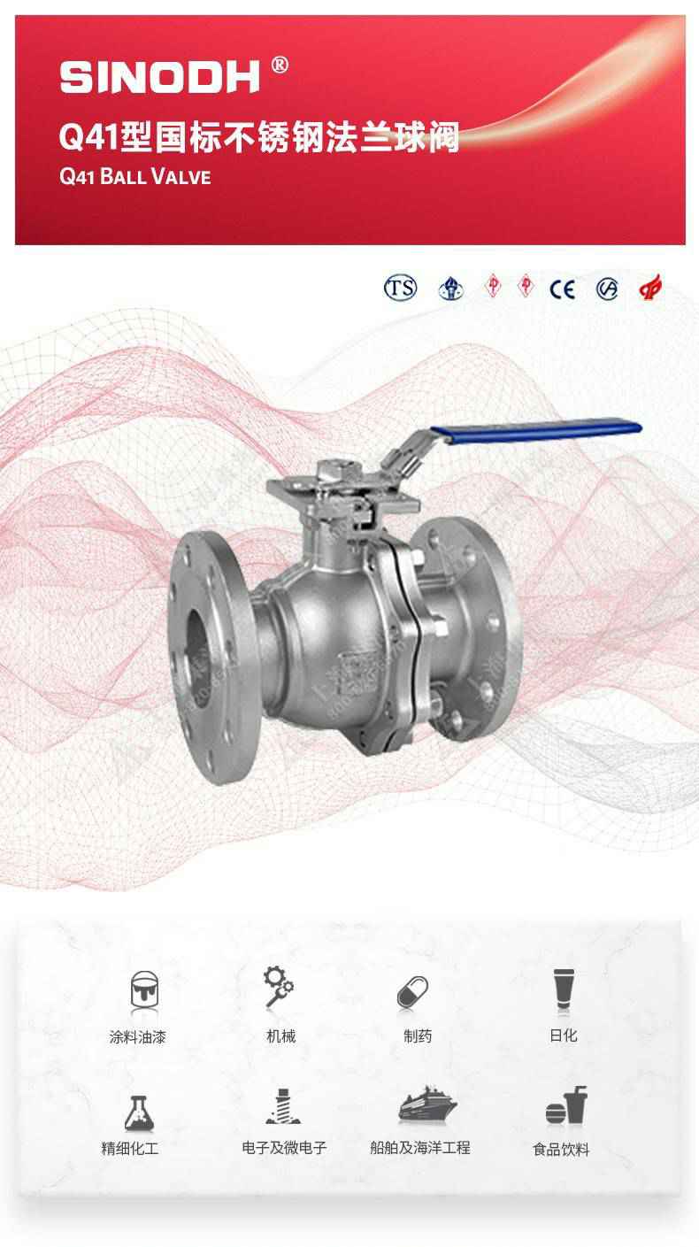 Q41型国标不锈钢法兰球阀,为长春朱凯健康饮食管理有限公司自主研发生产。本产品设计制造标准符合GB/T12237、GB/T 1 2224标准该产品的球体在介质压力作用下,球体能产生-定的位移并紧压在出口端的密封面上,保证出口端密封。适用于水、溶剂、酸和天然气等-般工业介质,也适用于工况恶劣的介质,如氧气、过氧化氢、甲烷和乙烯等介质。